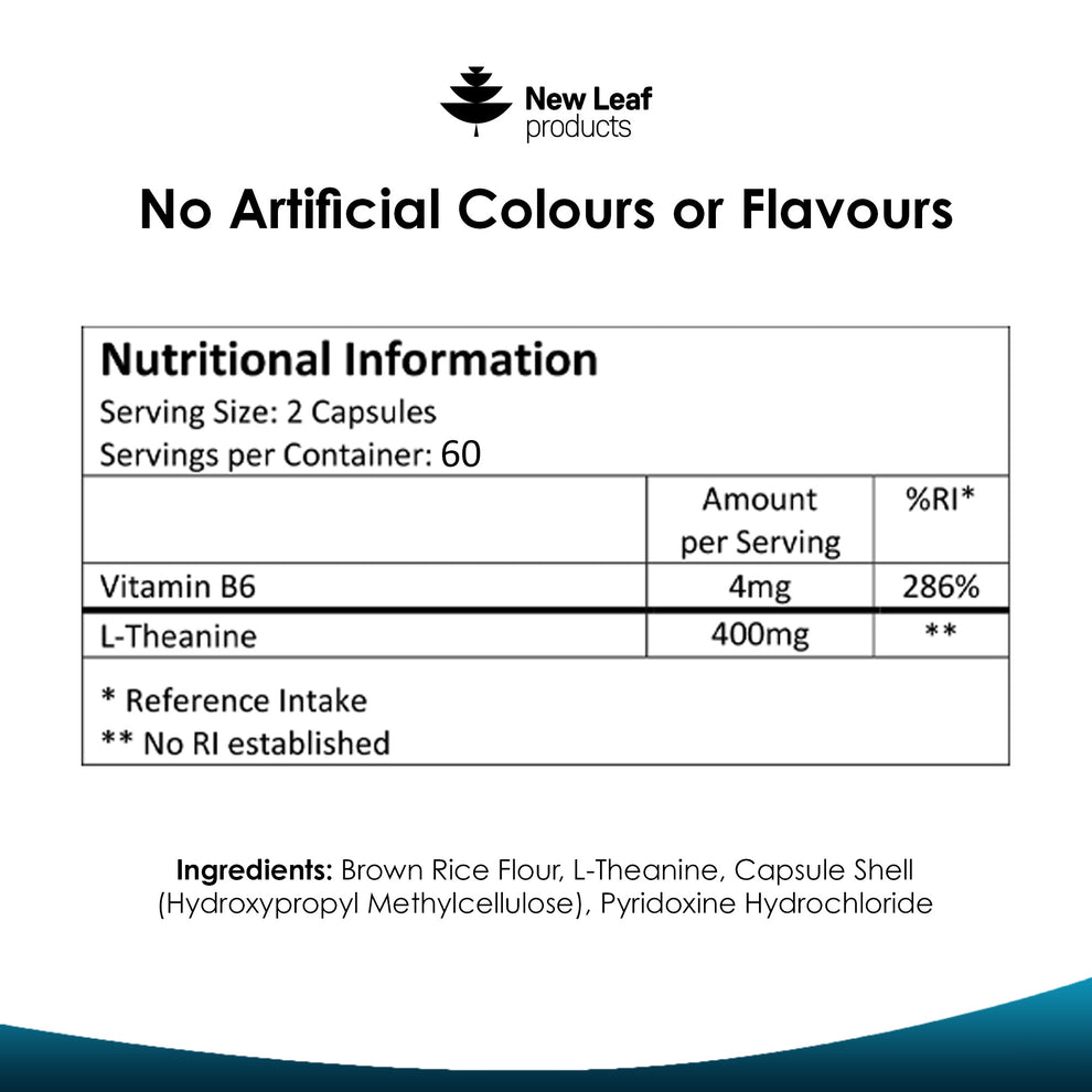 New Leaf L-Theanine 400mg with Vitamin B6 – High Strength Vegan – 120 Capsules